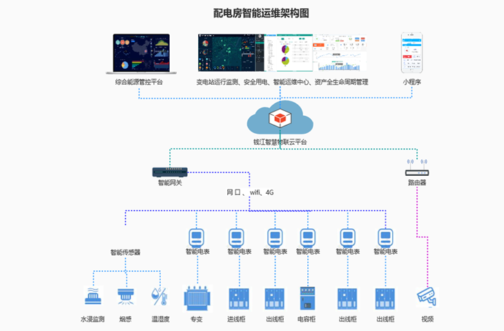配电站房是整个供电系统与分散的用户群直接相接的部分。但近年来配电站房事故多发,使得企业、居民的生活及工作用电受到一定影响。运维平台可以实现配电实时监测和预警、智能运维,同时也是维护电力设备安全运行的重要手段。利用大数据平台、能效管理平台、资产管理系统和专家诊断系统等辅助支撑系统,可为配电室的安全运行、故障诊断、状态预警和能效改善提供智能分析与精确指导,让用户更安全、可靠、便宜用电。